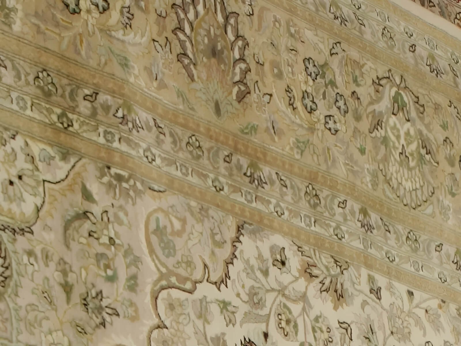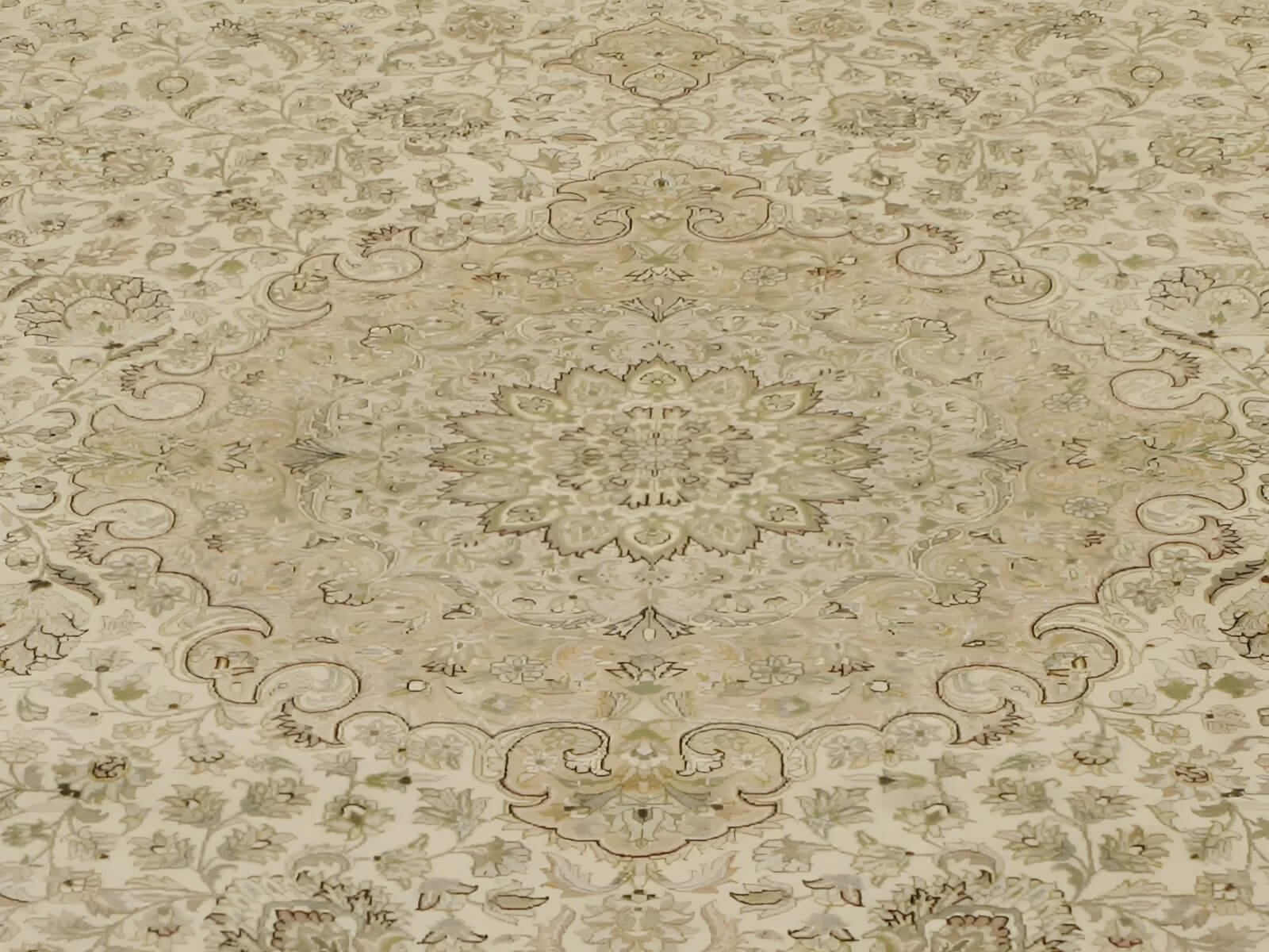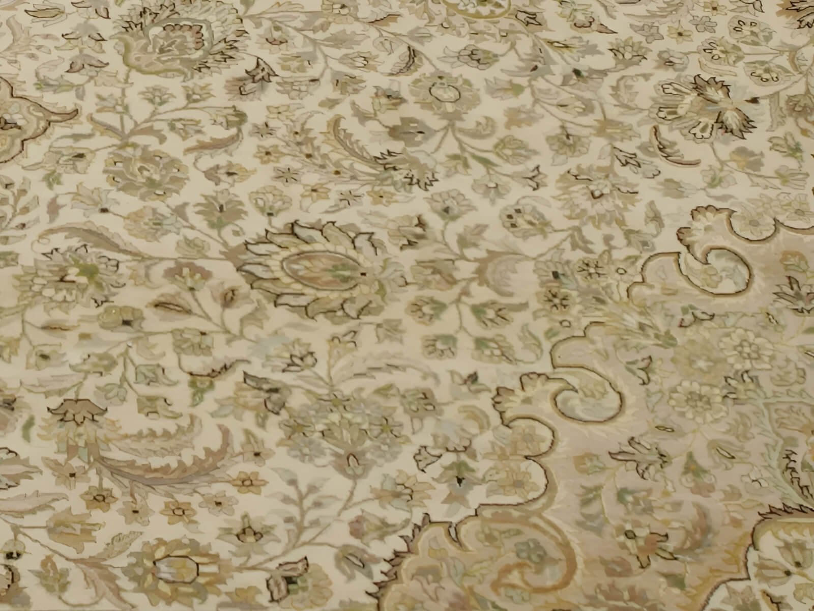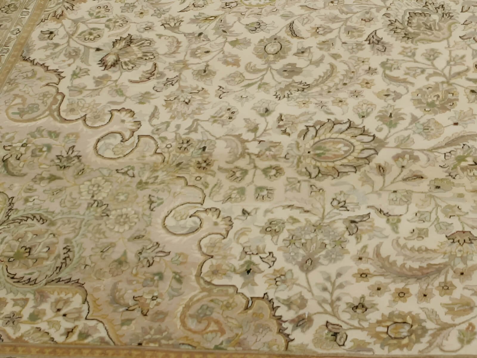 The colors ivory and beige create a calming and serene ambiance. With the highest quality combination of silk and wool, the silk adds a touch of glamour to the rug, while the wool provides durability and warmth.