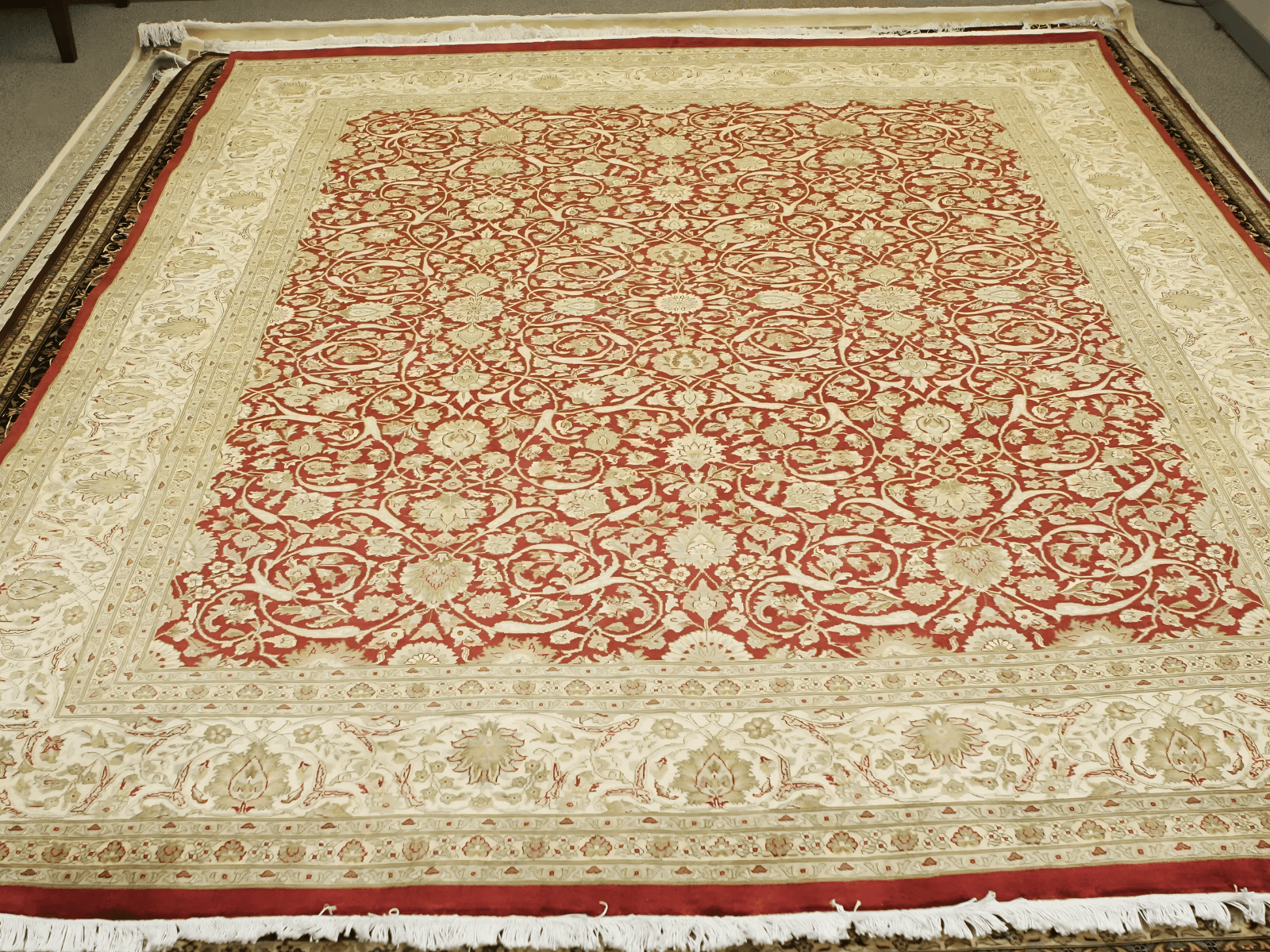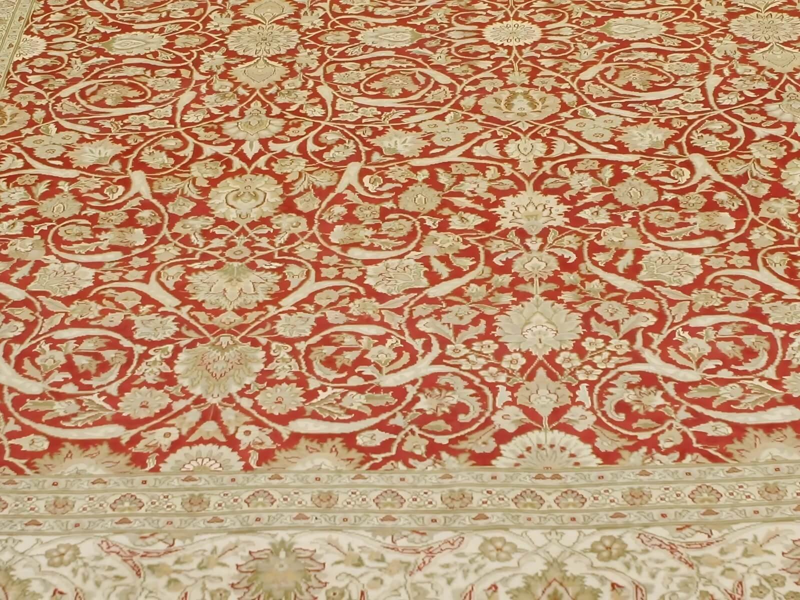 The patterns feature intricate knotting and weaving techniques that create a highly textured and dimensional appearance. The red color signifies passion, warmth, and energy, while the ivory serves to offer a soothing contrast that brings balance to the design.